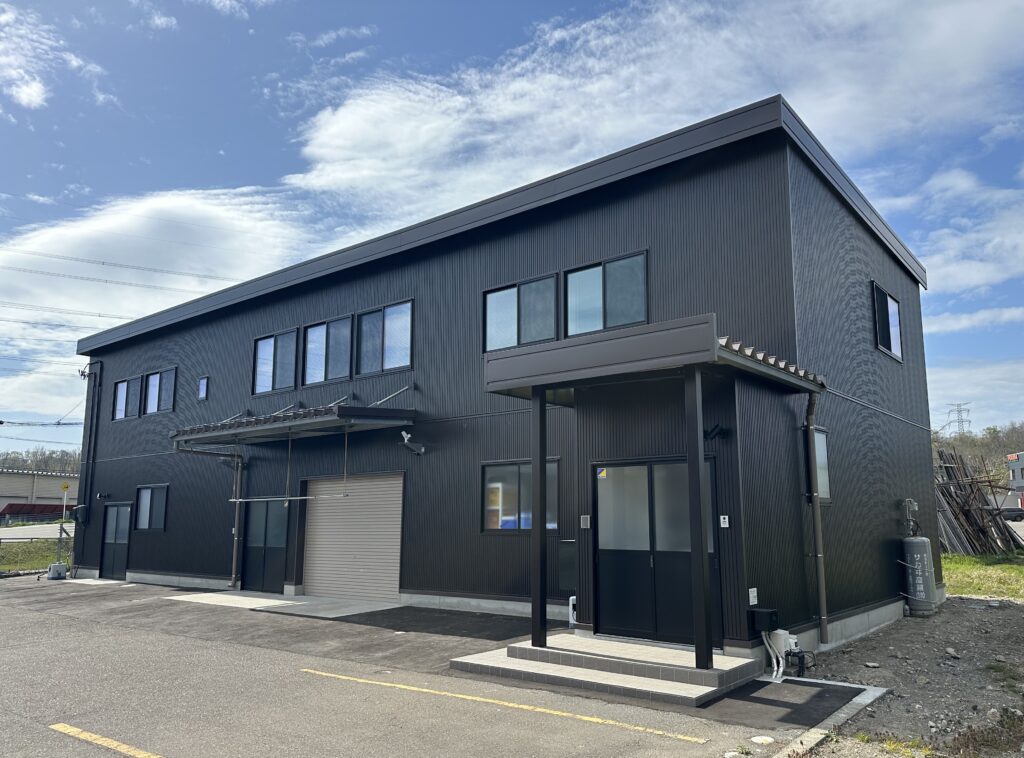 1階に倉庫・作業室、2階に事務所を配したスタンダードシンプルな事務所です。